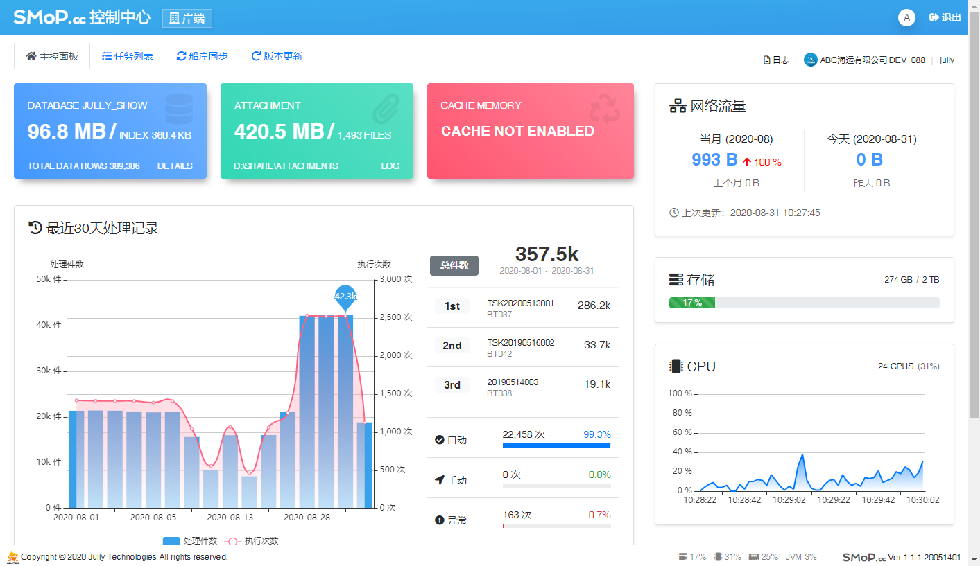 自動處理任務計劃、船岸數據同步和程序自動更新